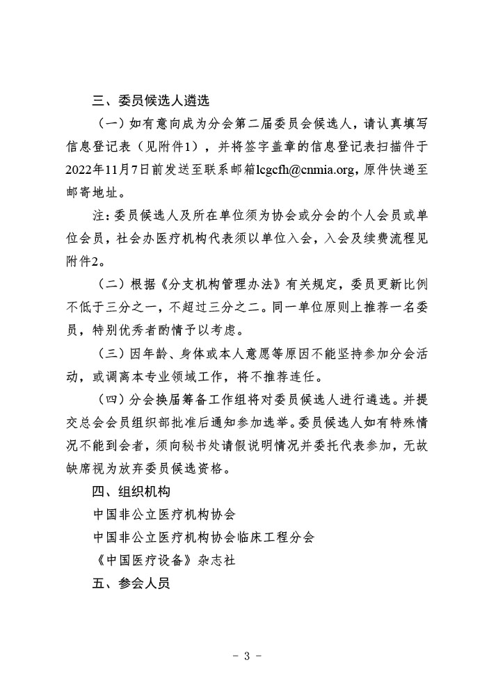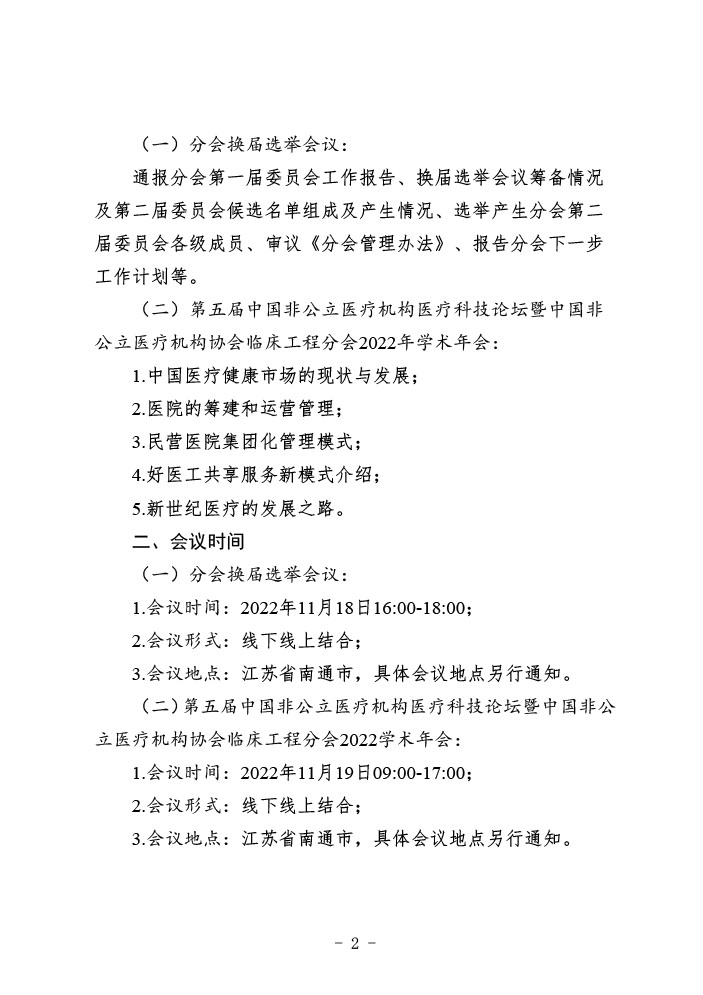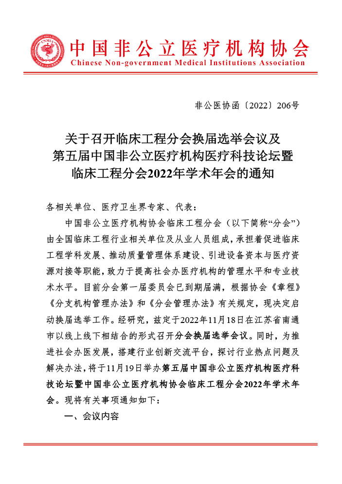 分支機構丨關于召開臨床工程分會換屆選舉會議及第五屆中國非公立醫療 機構醫療科技論壇暨臨床工程分會2022年學術年會的通知
