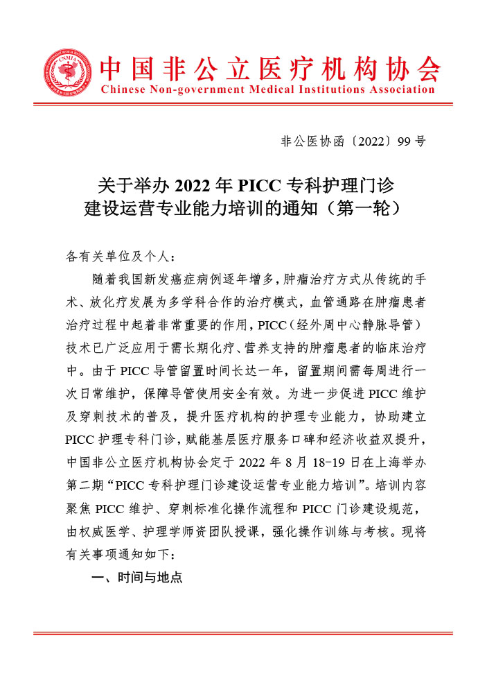 學術培訓丨關于舉辦2022年PICC專科護理門診建設運營專業能力培訓的通知(第一輪)