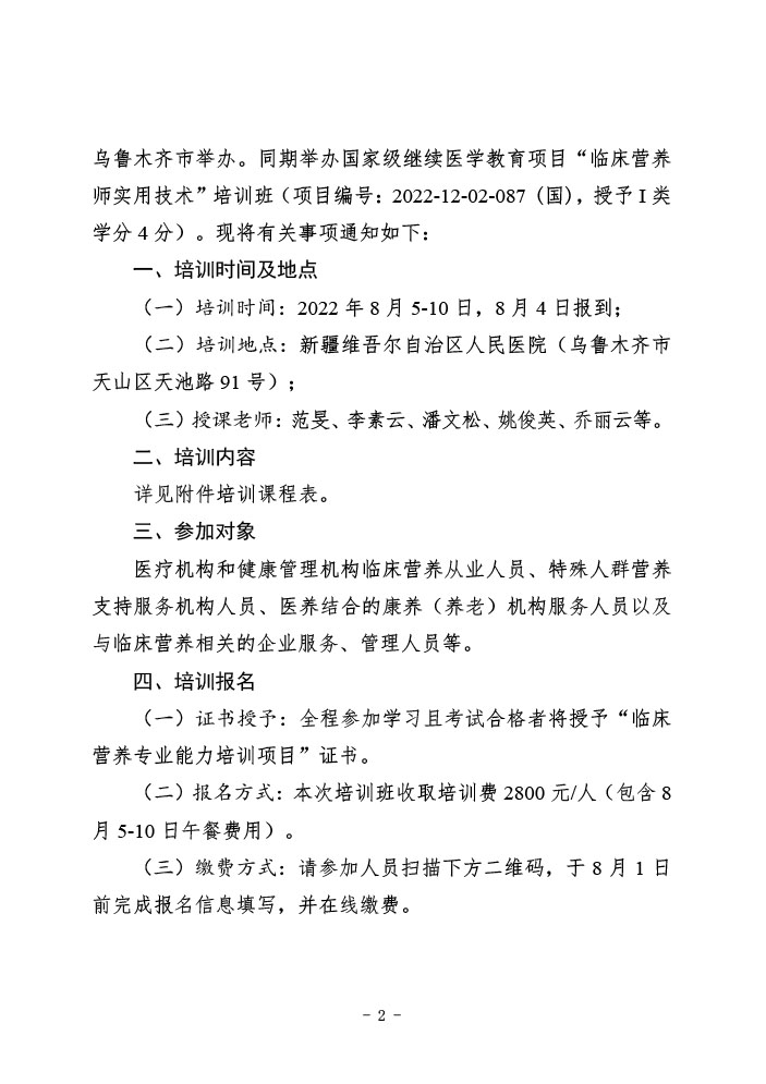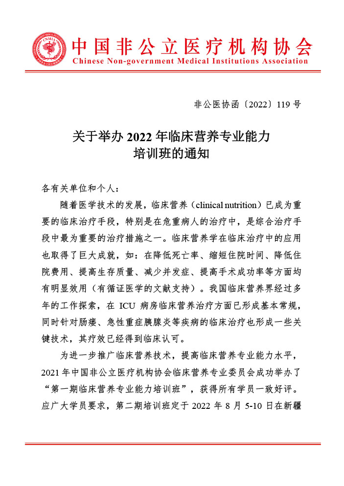 學術培訓丨關于舉辦2022年臨床營養專業能力培訓班的通知