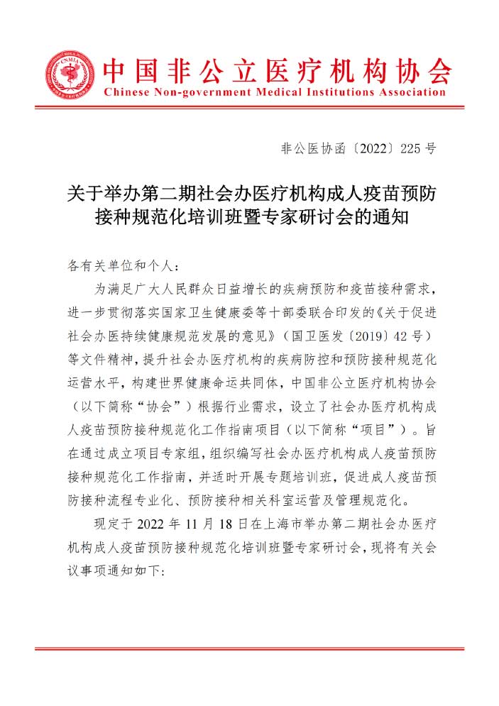學術培訓丨關于舉辦第二期社會辦醫(yī)療機構成人疫苗預防接種規(guī)范化培訓班 暨專家研討會的通知