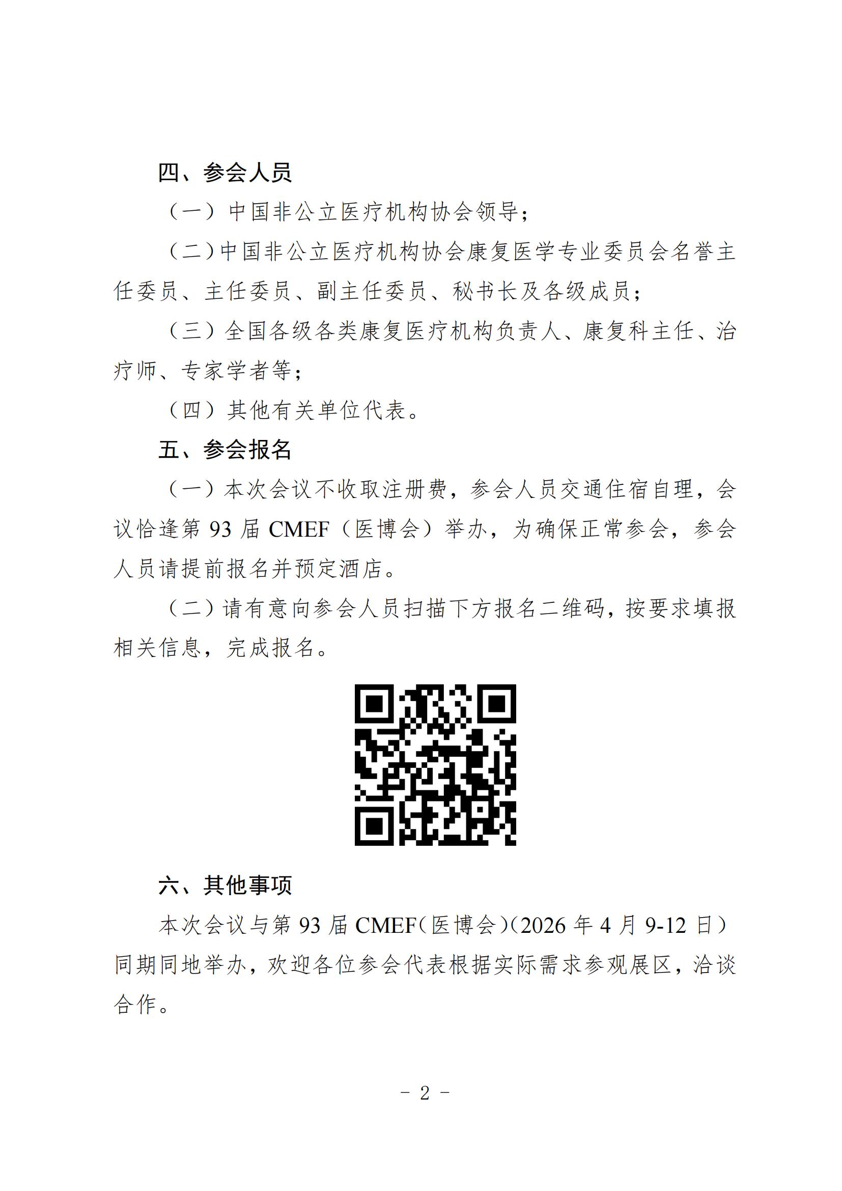 中國(guó)非公立醫(yī)療機(jī)構(gòu)協(xié)會(huì)關(guān)于召開2026年康復(fù)醫(yī)院院長(zhǎng)會(huì)議的通知
